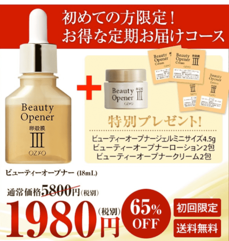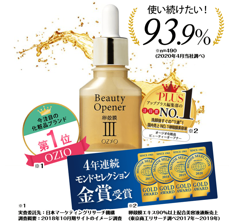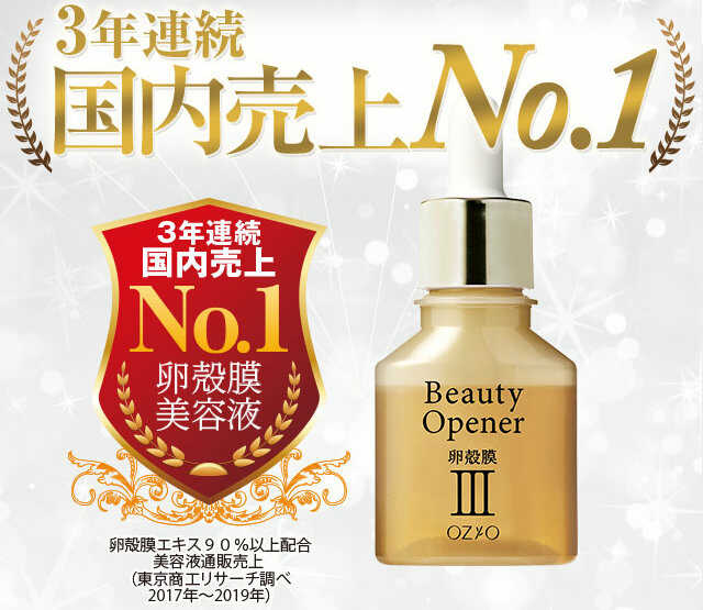『ビューティーオープナー』は東京大学・東京農工大学が共同研究した、"卵殻膜エキス"を使用した美容液で、お肌に悩みを持つ女性達の救世主として大注目のアイテムなんです♪