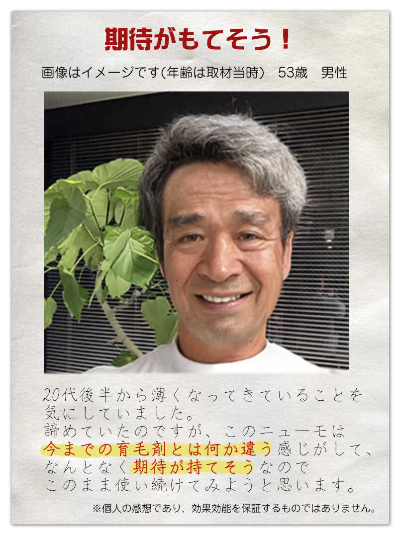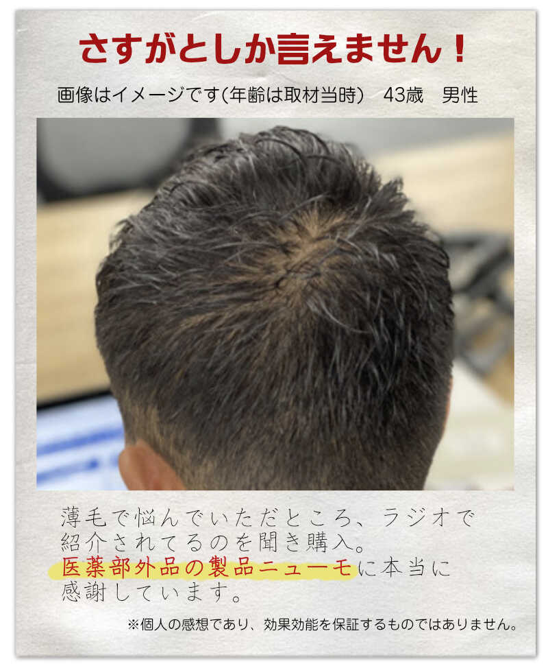 『ニューモ』を使い始めてから、おかげさまで、髪もガンガンセットできるようになり、周りからも若くなったなんて言われちゃってます!(笑)
